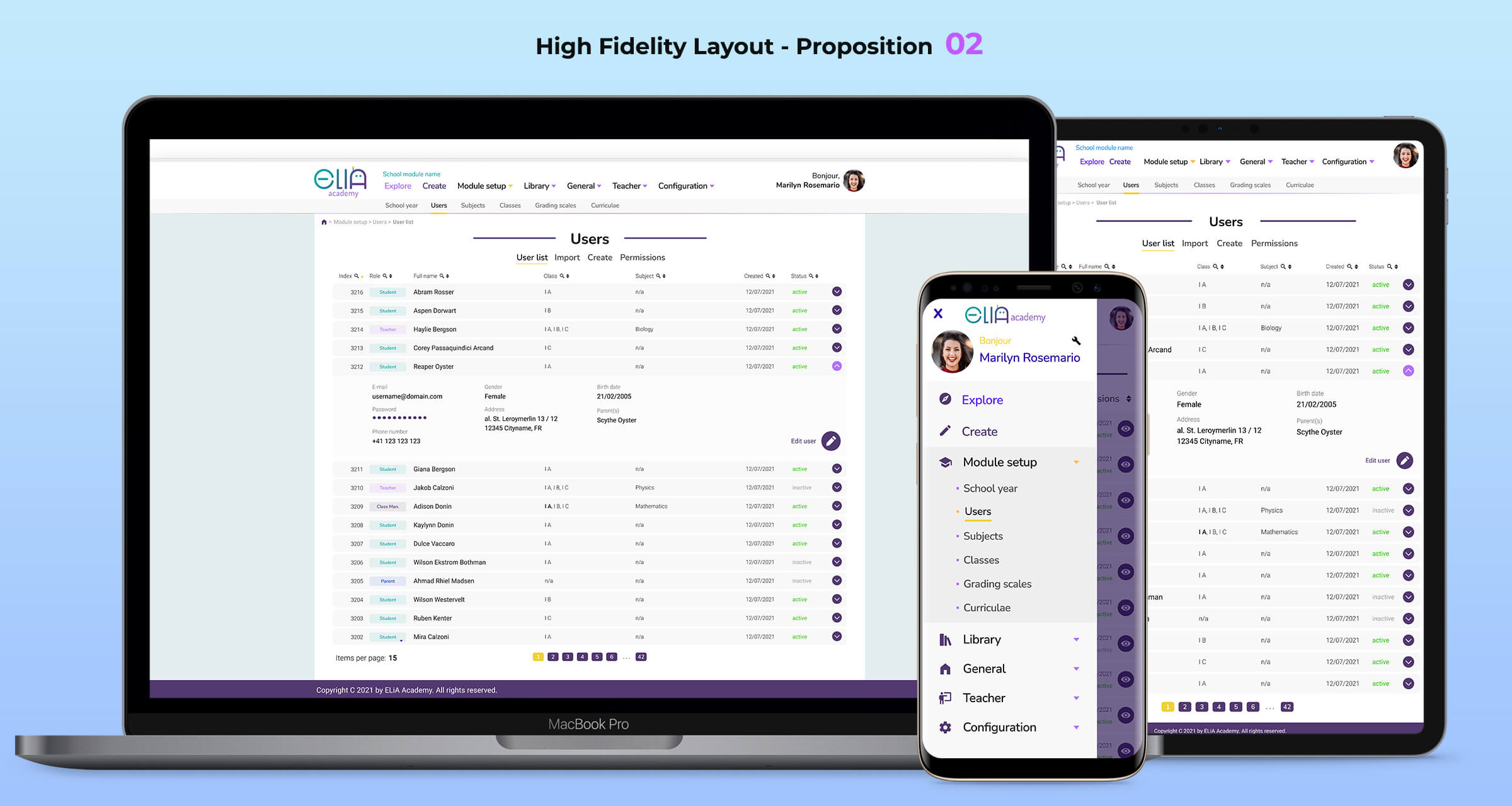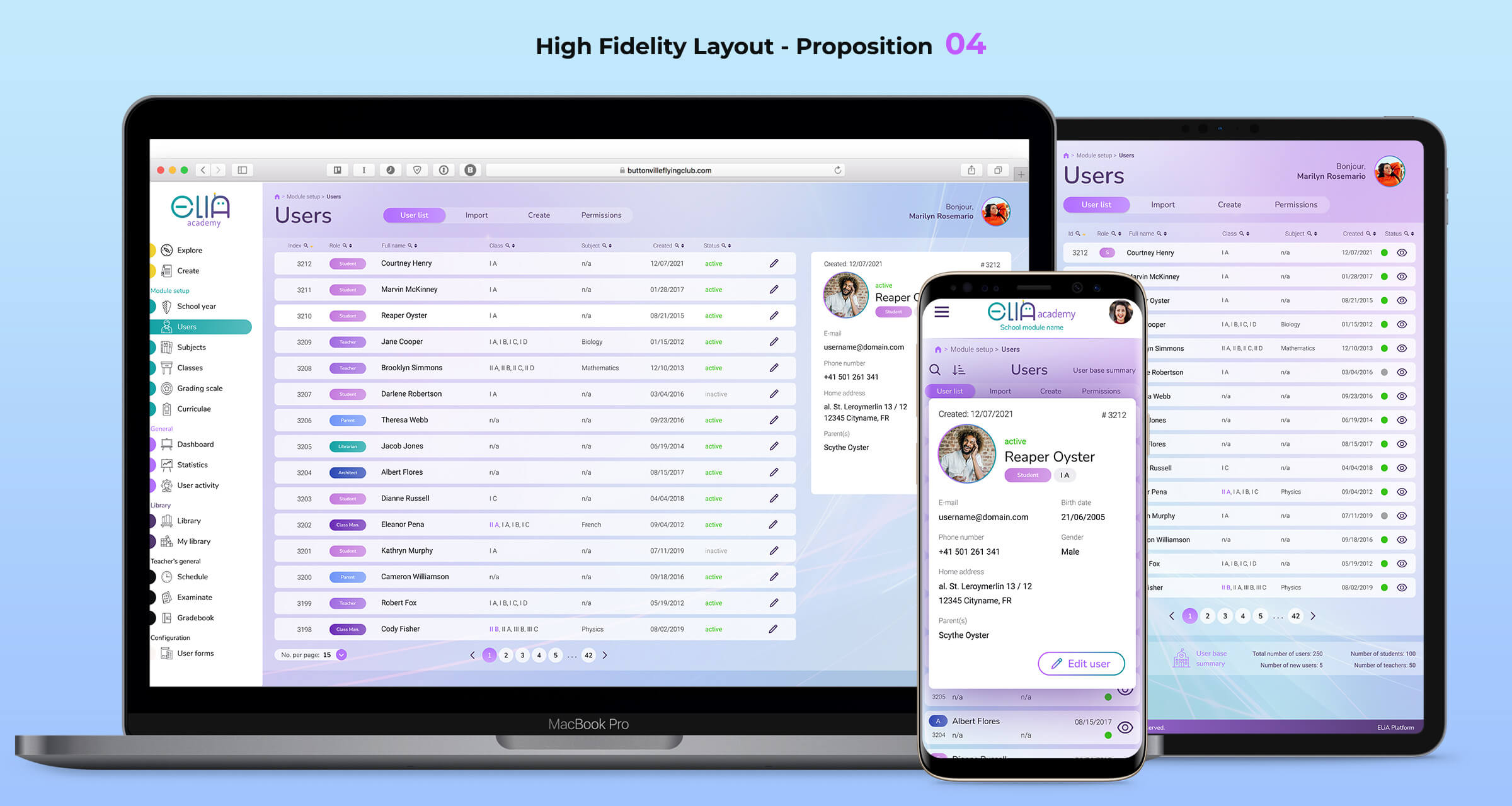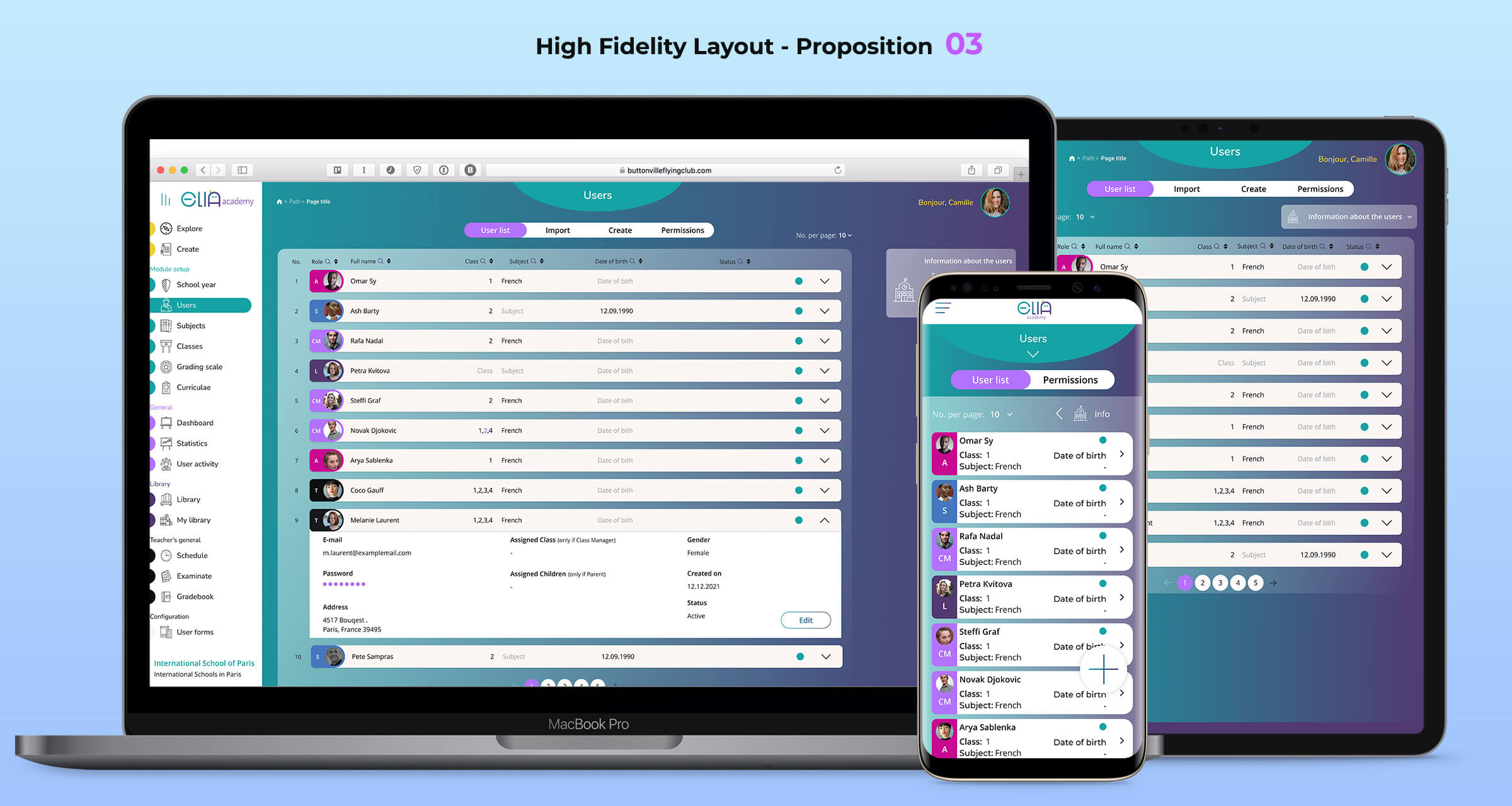 I was responsible for the end-to-end design process, including client interviews, information architecture analysis, UX research, user journeys and flow design, low-fidelity wireframes, an atomic design library, interactive prototypes, and high-fidelity interfaces. My role also covered student reporting views, usability testing, branding, and close collaboration with development teams during implementation.