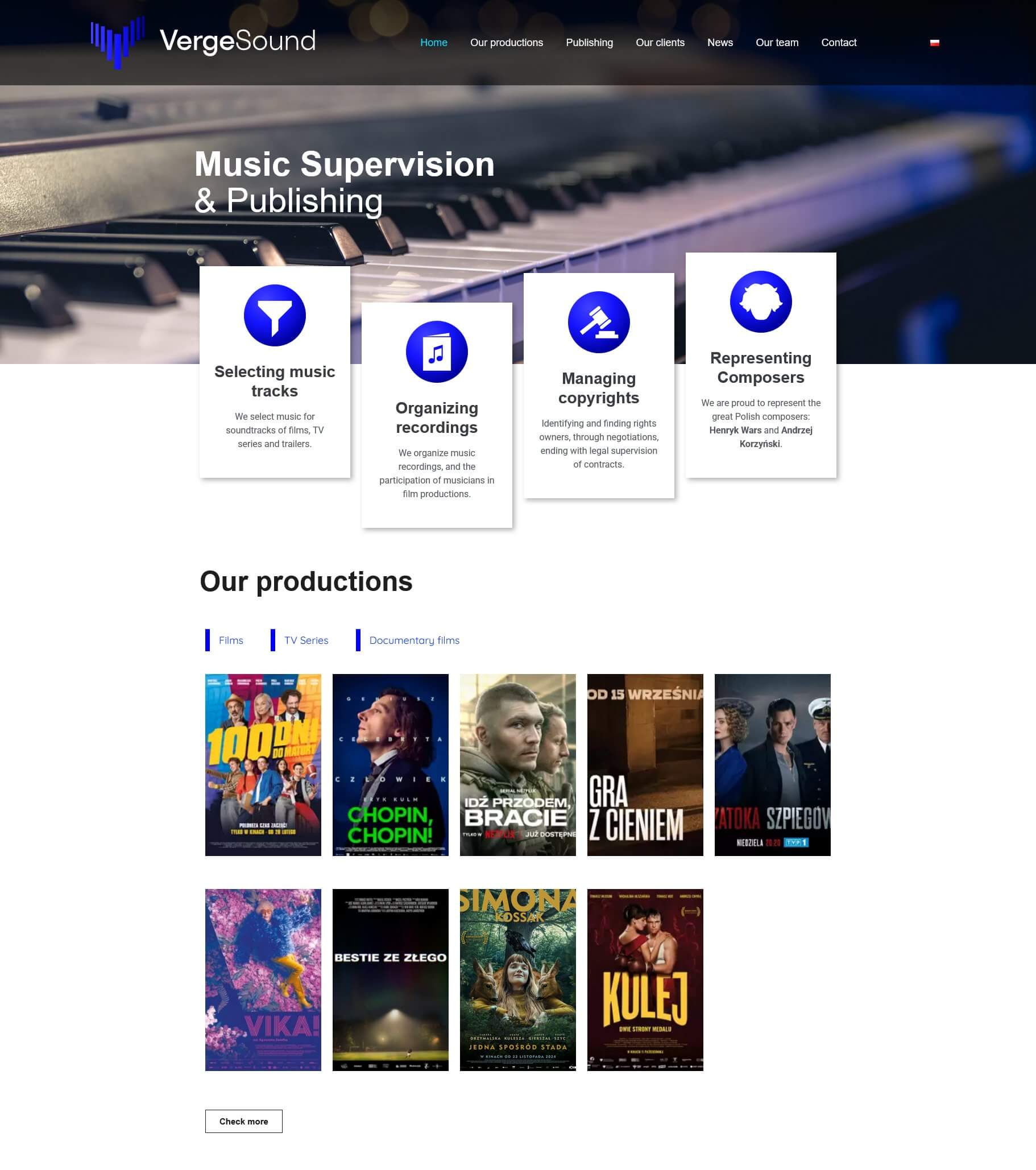 To strengthen the company’s online presence, I designed and delivered a new bilingual website built on WordPress with Elementor and original theme. The site includes a structured catalogue of nearly 100 Verge Sound productions, presenting the agency’s portfolio in a clear, accessible, and visually coherent way.